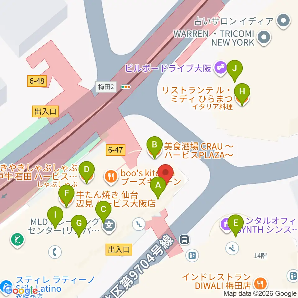 ウメダFM Be Happy!789周辺のファミレス・ファーストフード一覧地図