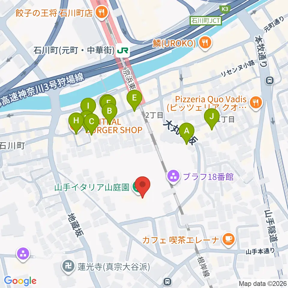 外交官の家周辺のファミレス・ファーストフード一覧地図
