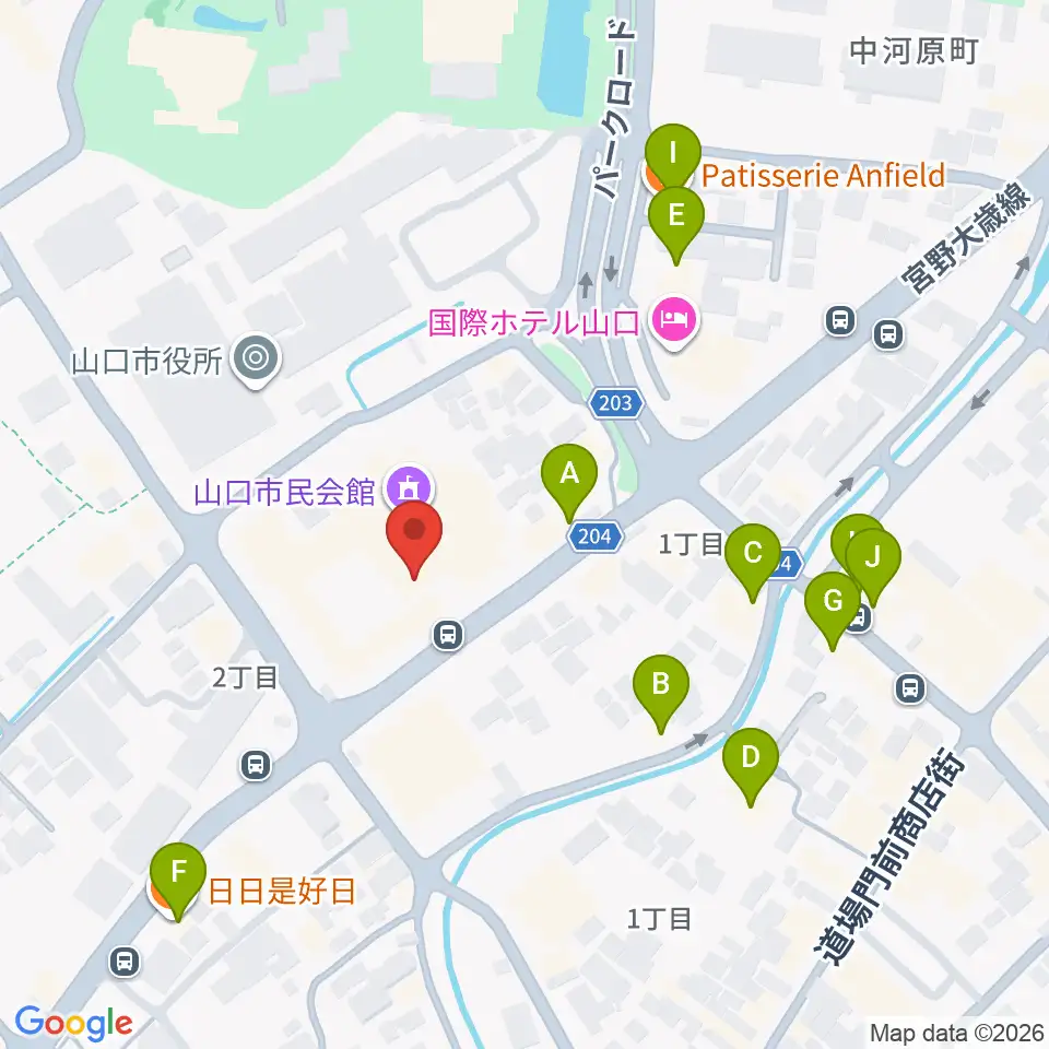 山口市民会館周辺のファミレス・ファーストフード一覧地図