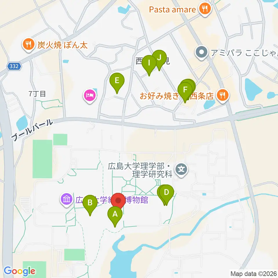 広島大学サタケメモリアルホール周辺のファミレス・ファーストフード一覧地図