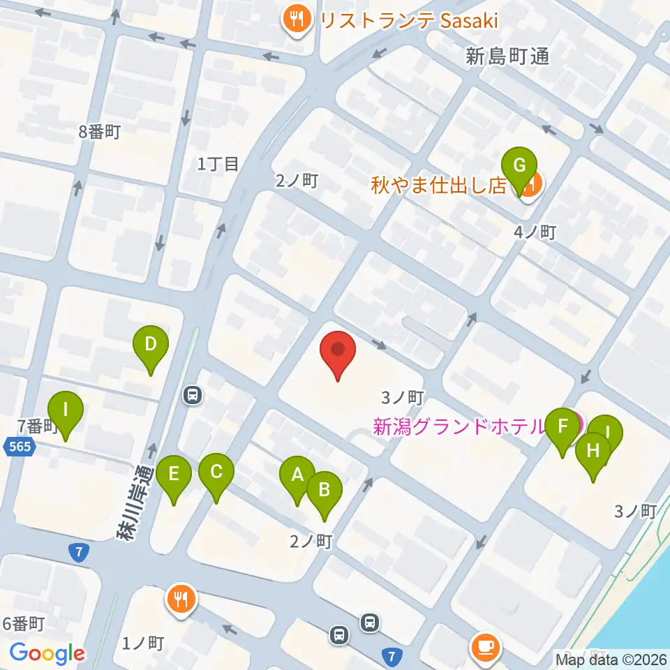 クロスパルにいがた周辺のファミレス・ファーストフード一覧地図