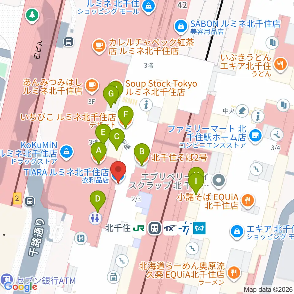 よみうりカルチャー北千住周辺のファミレス・ファーストフード一覧地図