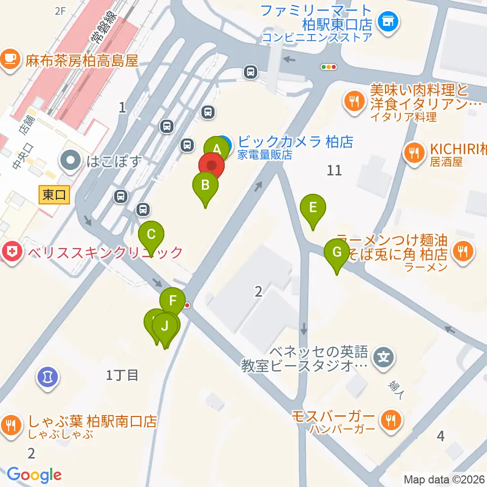 よみうりカルチャー柏周辺のファミレス・ファーストフード一覧地図