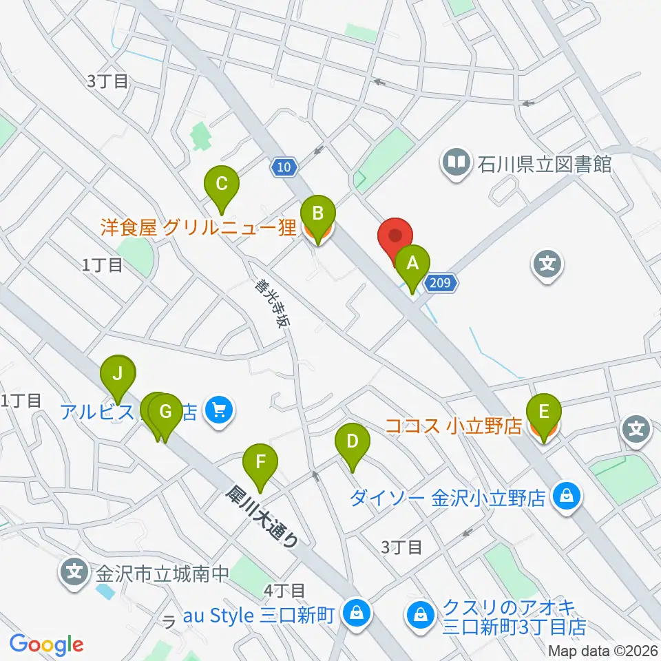 うつのみやカルチャーセンター小立野教室周辺のファミレス・ファーストフード一覧地図