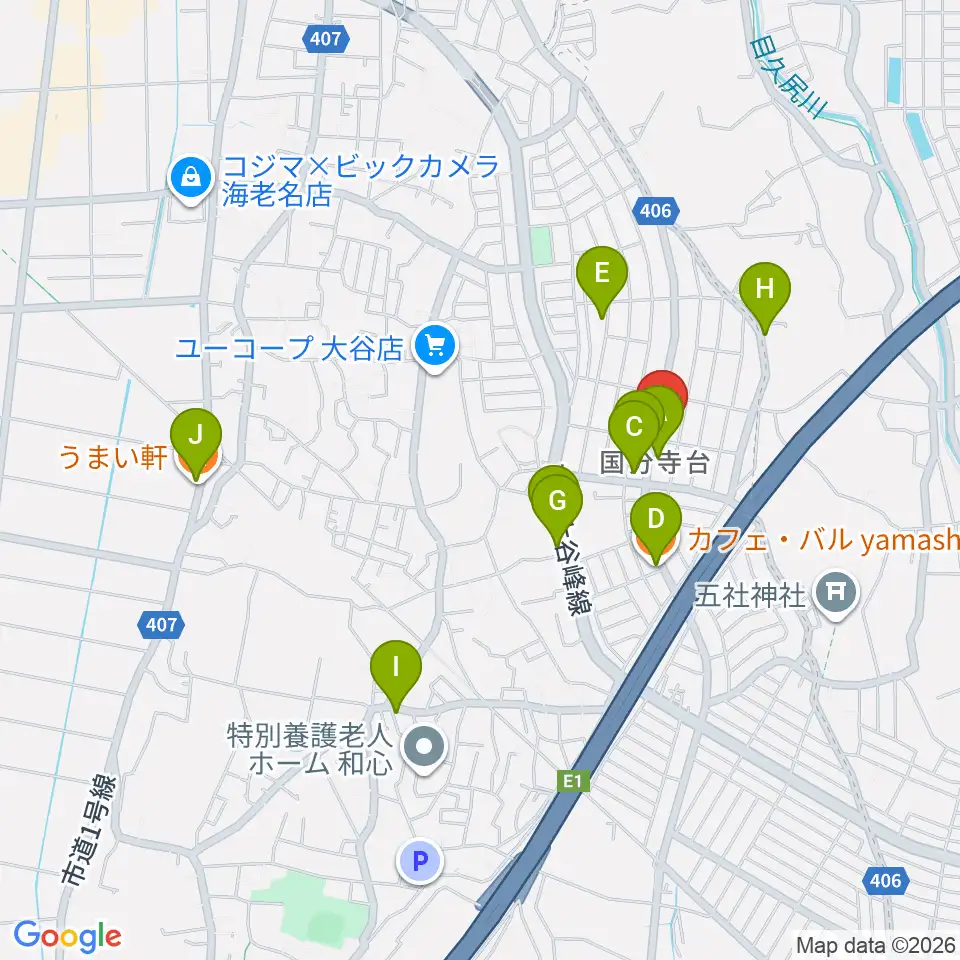 厚木楽器 アミ国分寺台周辺のファミレス・ファーストフード一覧地図