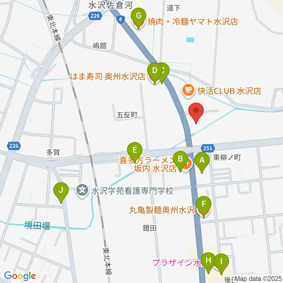 ゲオ奥州水沢佐倉河店周辺のファミレス・ファーストフード一覧地図