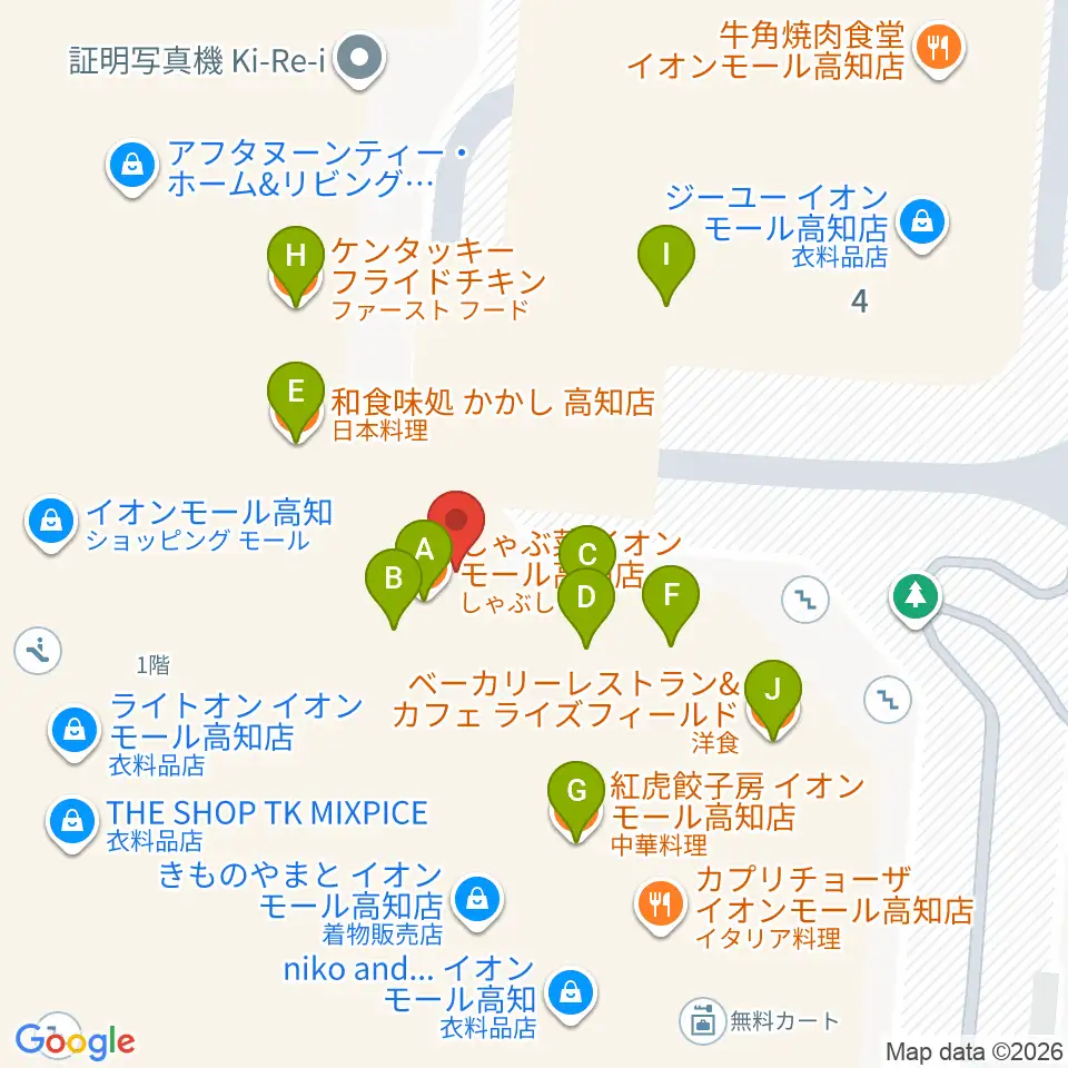 HMVイオンモール高知周辺のファミレス・ファーストフード一覧地図