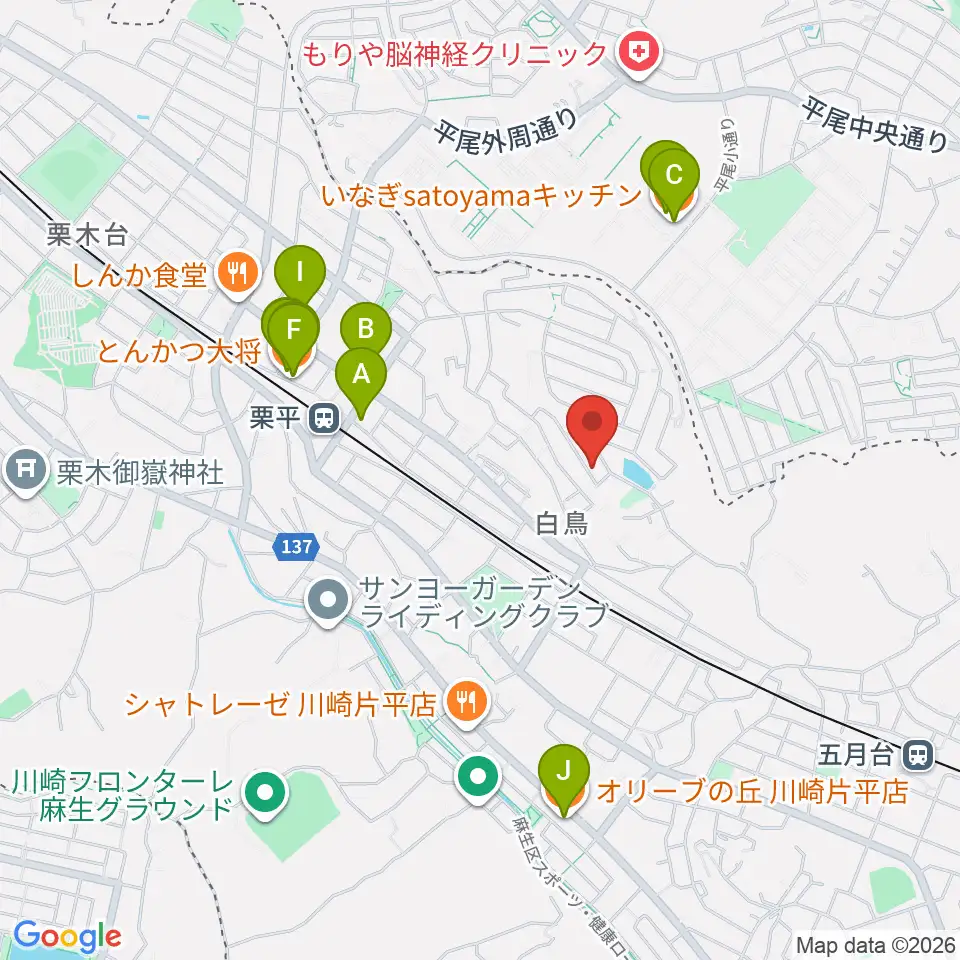 菊池ヴァイオリン・ピアノ教室周辺のファミレス・ファーストフード一覧地図