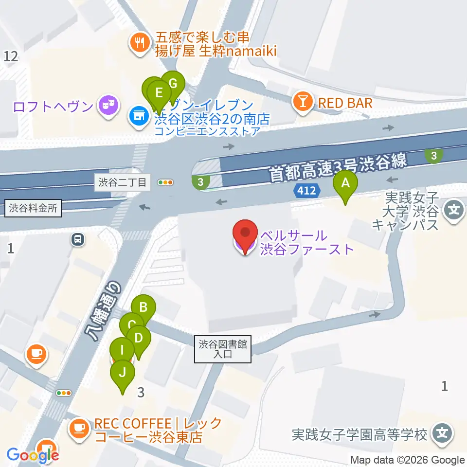 ベルサール渋谷ファースト周辺のファミレス・ファーストフード一覧地図
