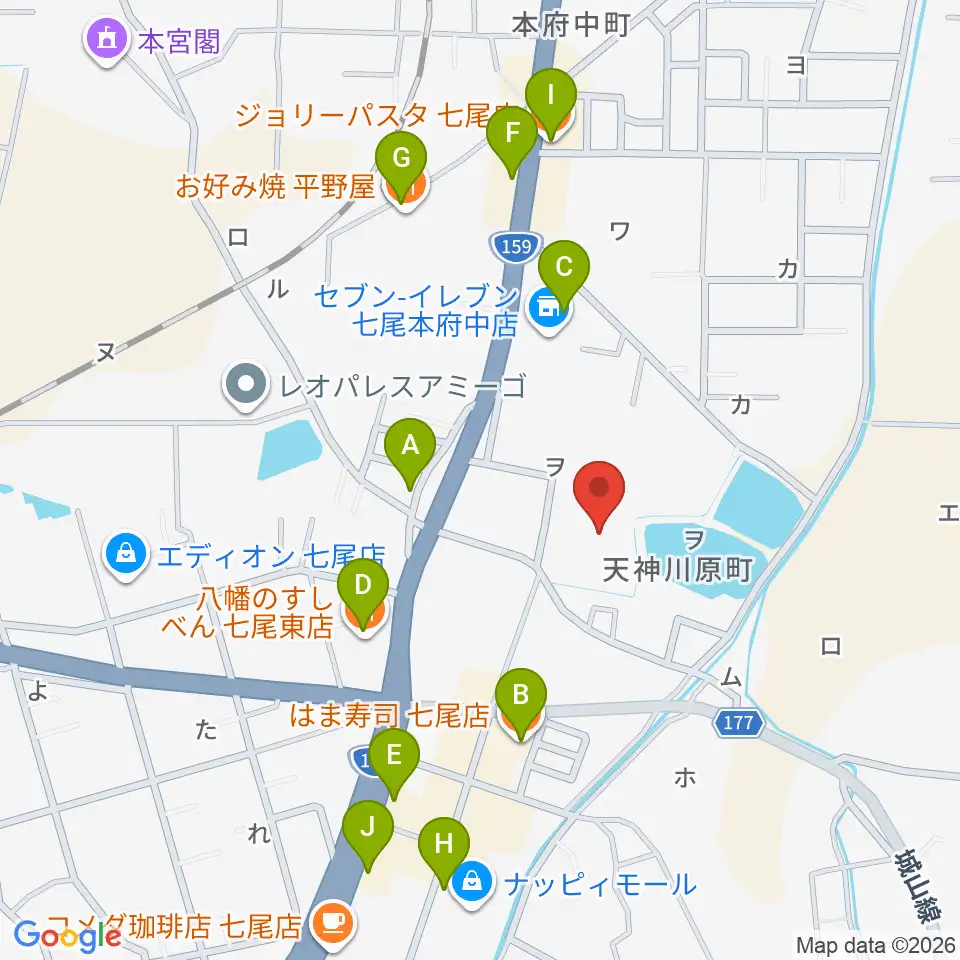 七尾市文化ホール周辺のファミレス・ファーストフード一覧地図