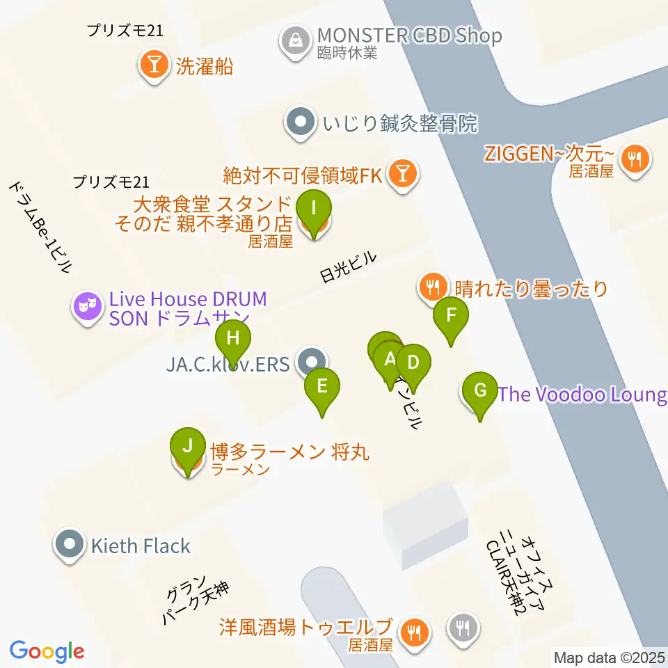 福岡天神graf(グラフ)周辺のファミレス・ファーストフード一覧地図