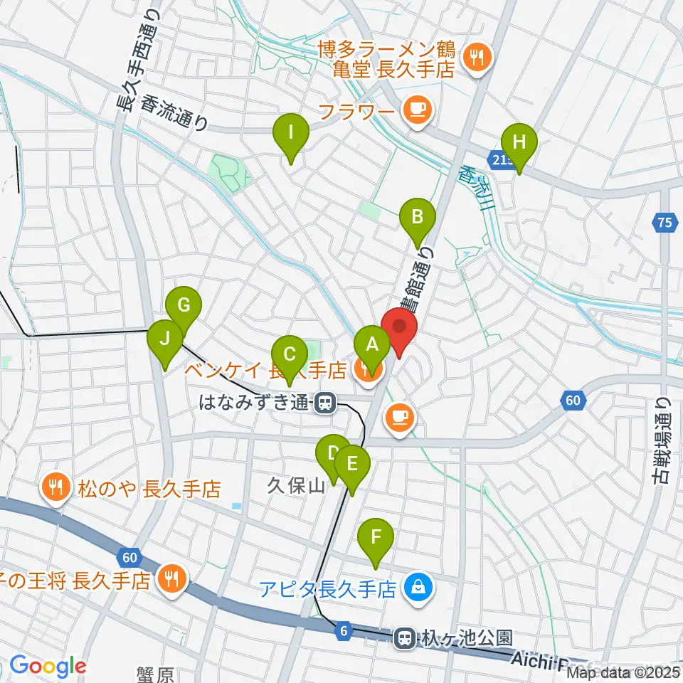 シンフォニア楽器 長久手店周辺のファミレス・ファーストフード一覧地図