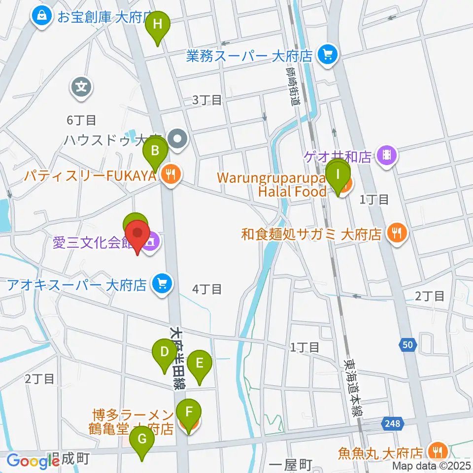 愛三文化会館周辺のファミレス・ファーストフード一覧地図