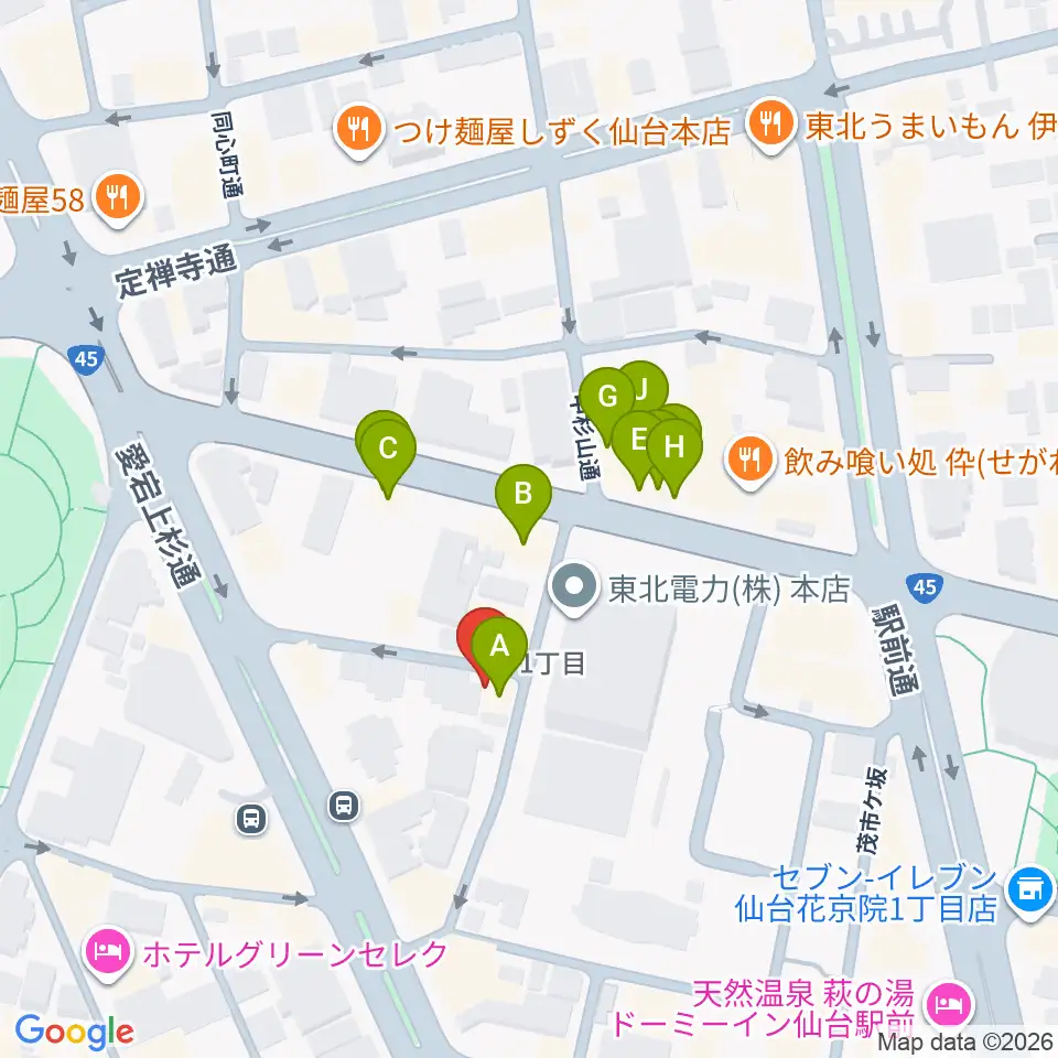 仙台スペースゼロ周辺のファミレス・ファーストフード一覧地図