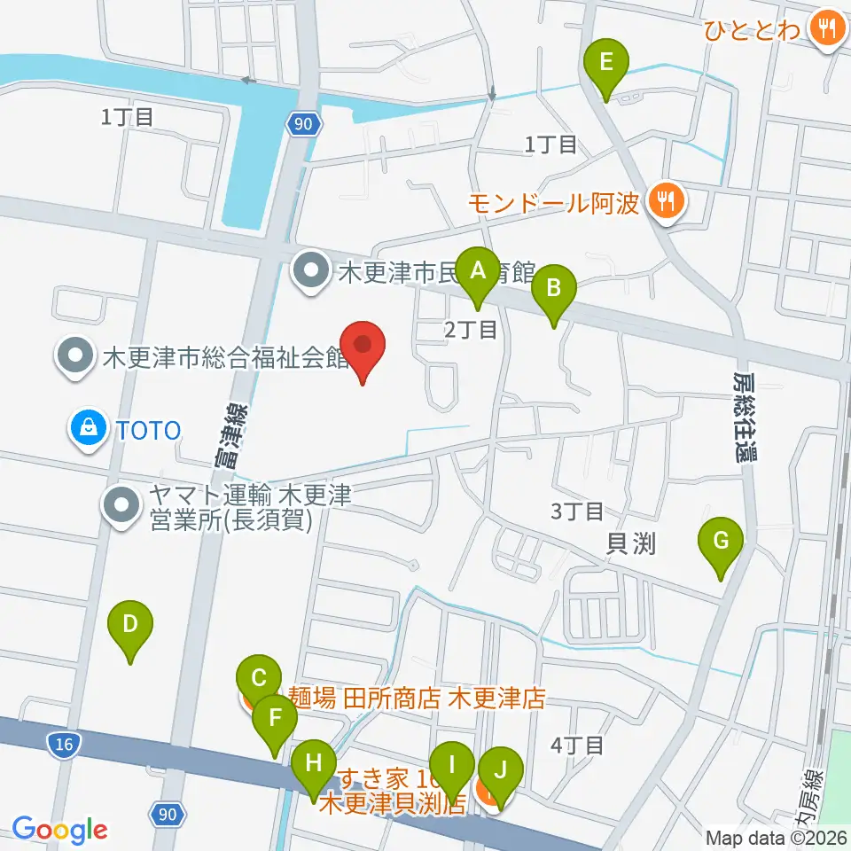 木更津市民会館周辺のファミレス・ファーストフード一覧地図