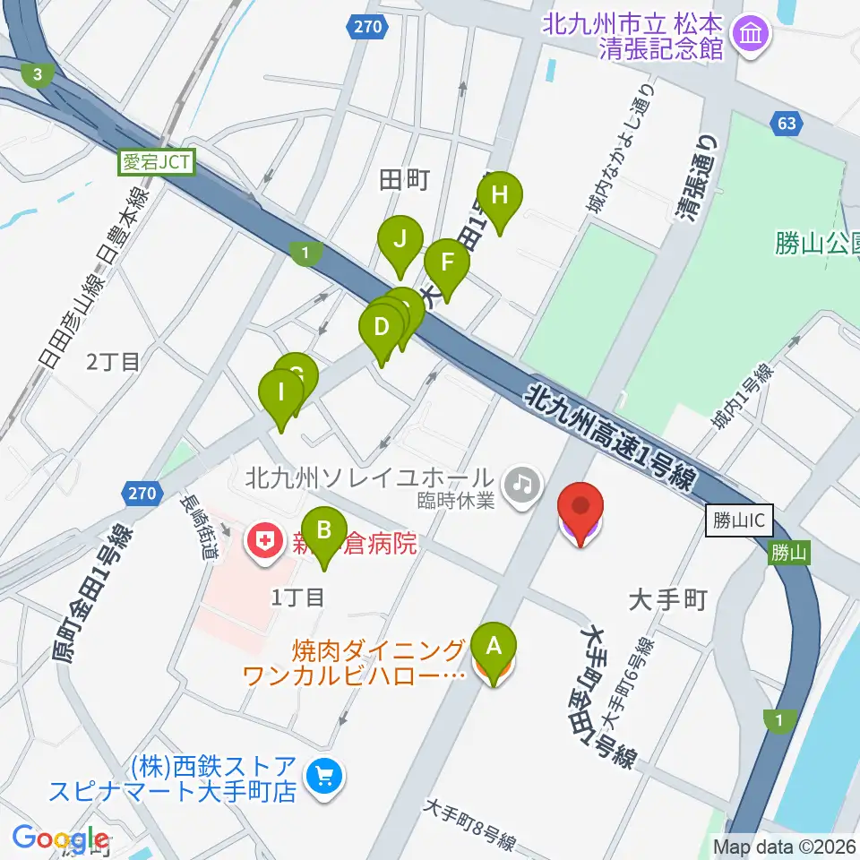 北九州市立男女共同参画センター・ムーブ周辺のファミレス・ファーストフード一覧地図