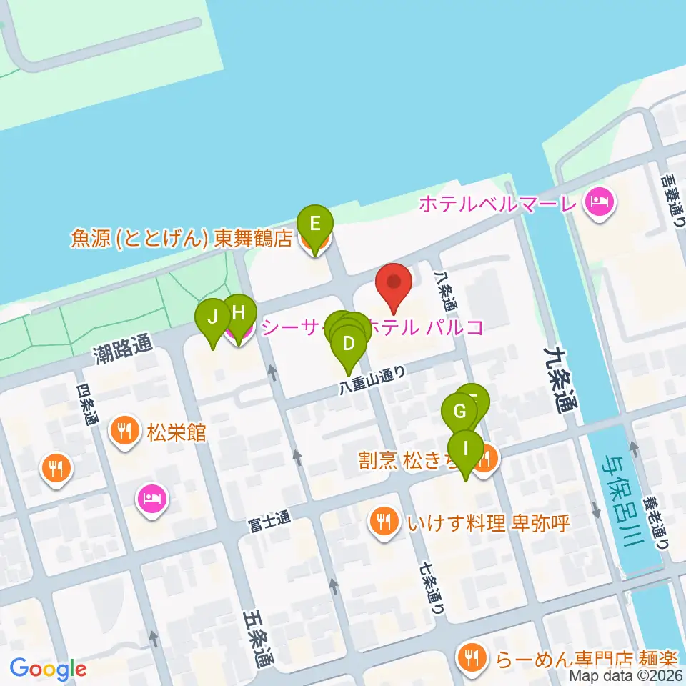 舞鶴市商工観光センターまいづるベイプラザ周辺のファミレス・ファーストフード一覧地図