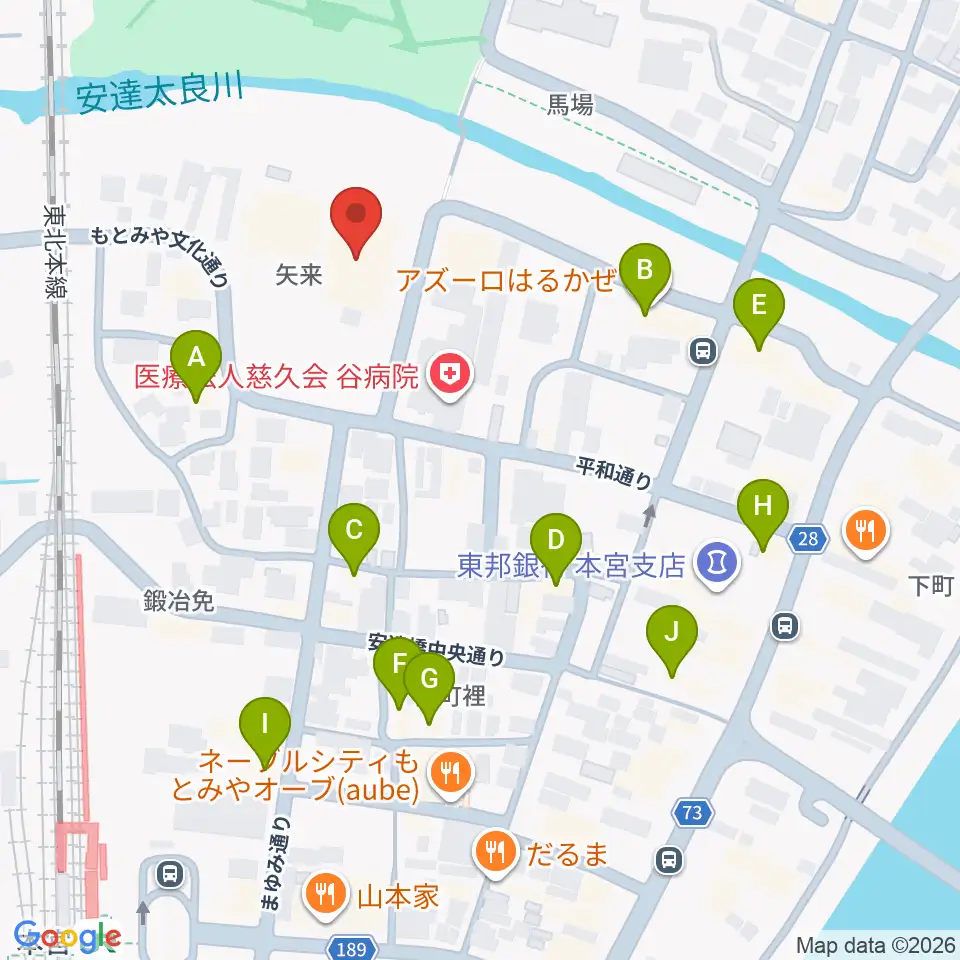 サンライズもとみや周辺のファミレス・ファーストフード一覧地図