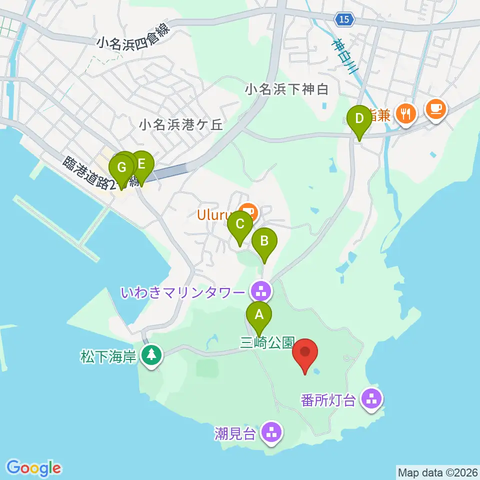 三崎公園野外音楽堂周辺のファミレス・ファーストフード一覧地図