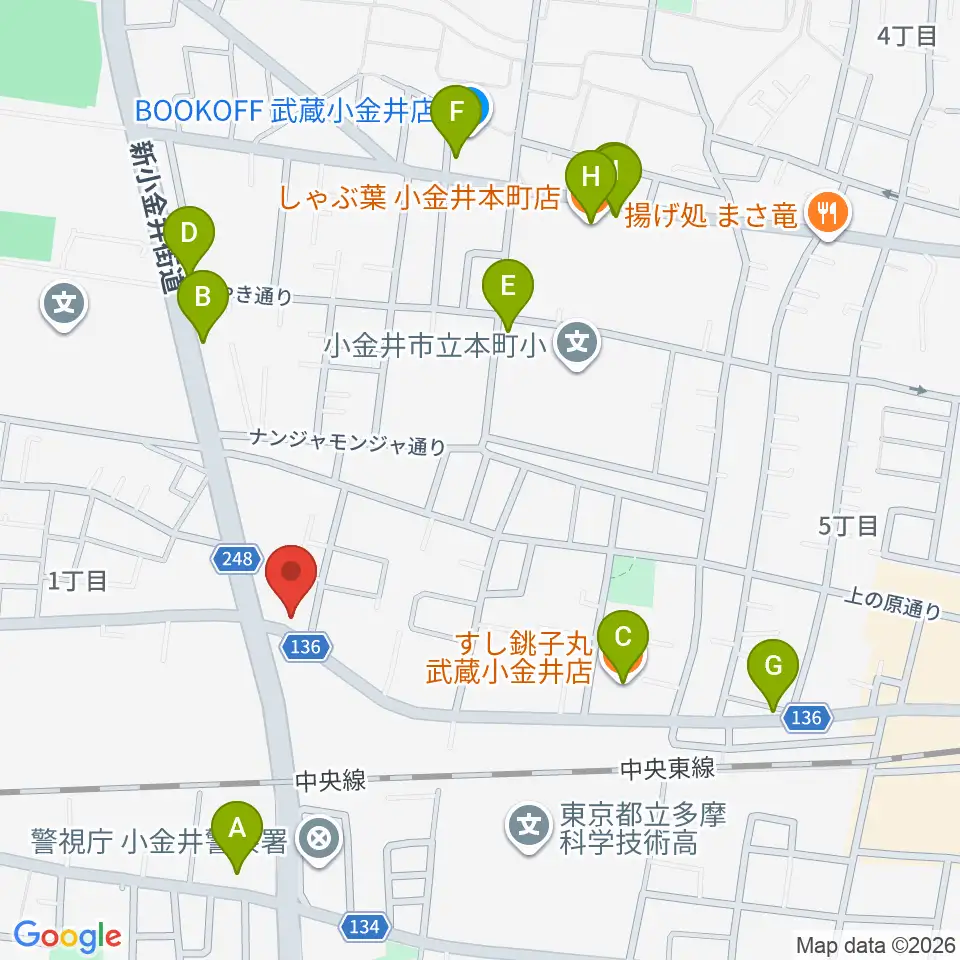 貫井北センター周辺のファミレス・ファーストフード一覧地図