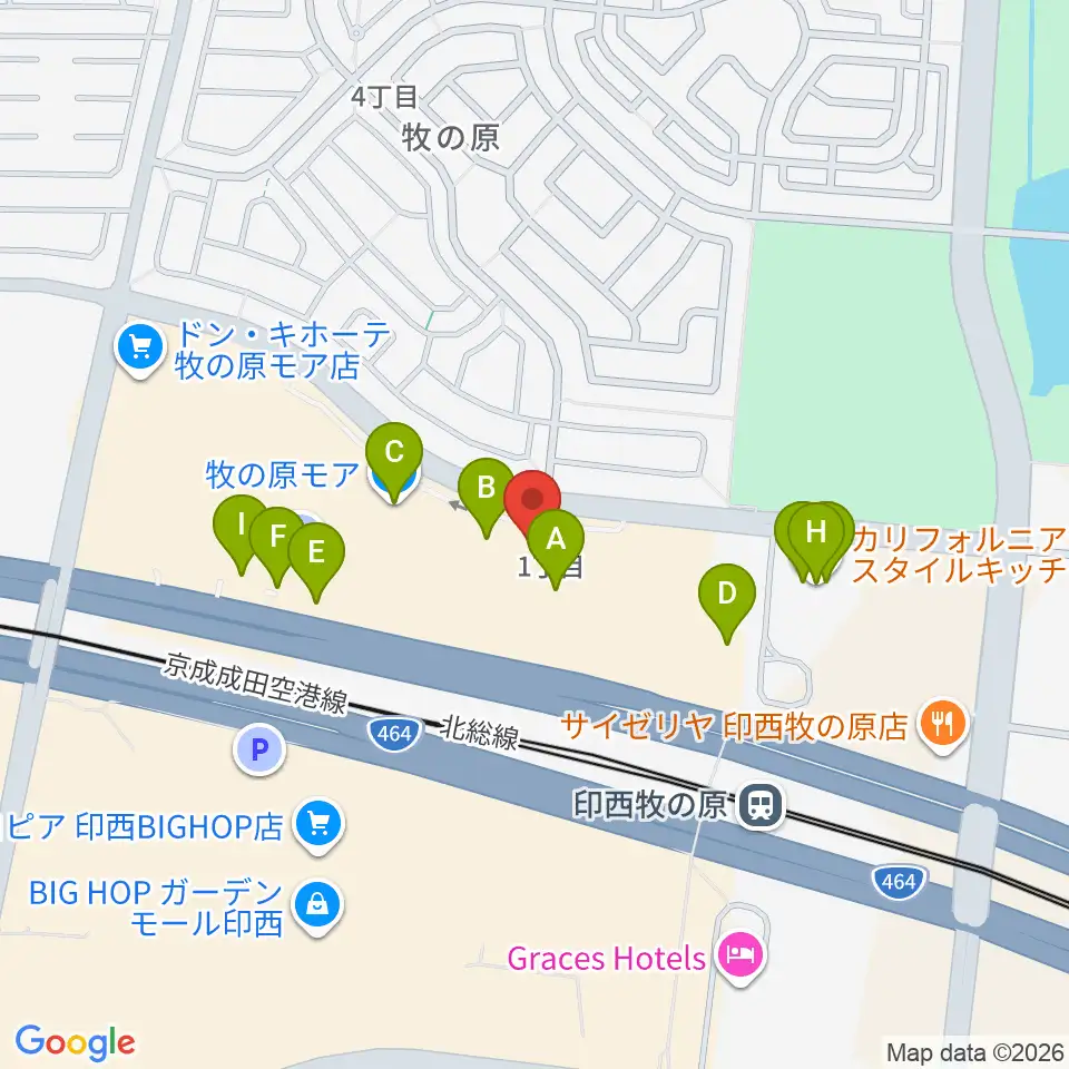 伊藤楽器 ユニスタイル牧の原モアセンター周辺のファミレス・ファーストフード一覧地図