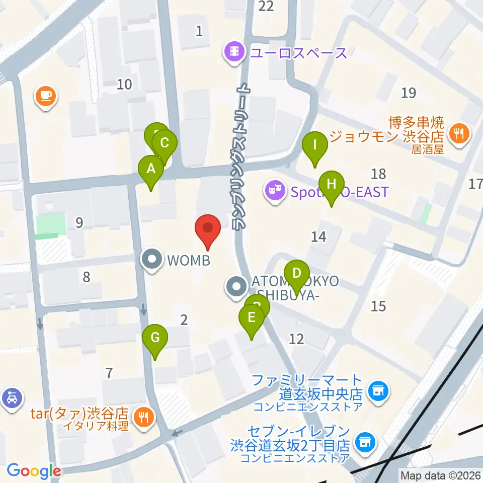 渋谷Spotify O-nest周辺のファミレス・ファーストフード一覧地図