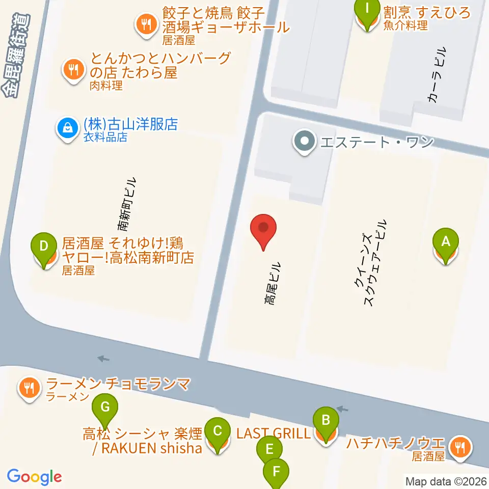 高松ルーツレコード周辺のファミレス・ファーストフード一覧地図