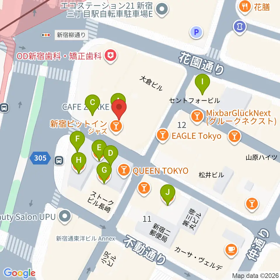 新宿PIT INN周辺のファミレス・ファーストフード一覧地図