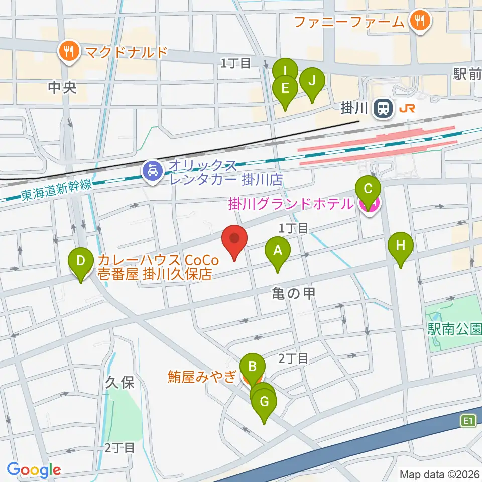掛川市美感ホール周辺のファミレス・ファーストフード一覧地図