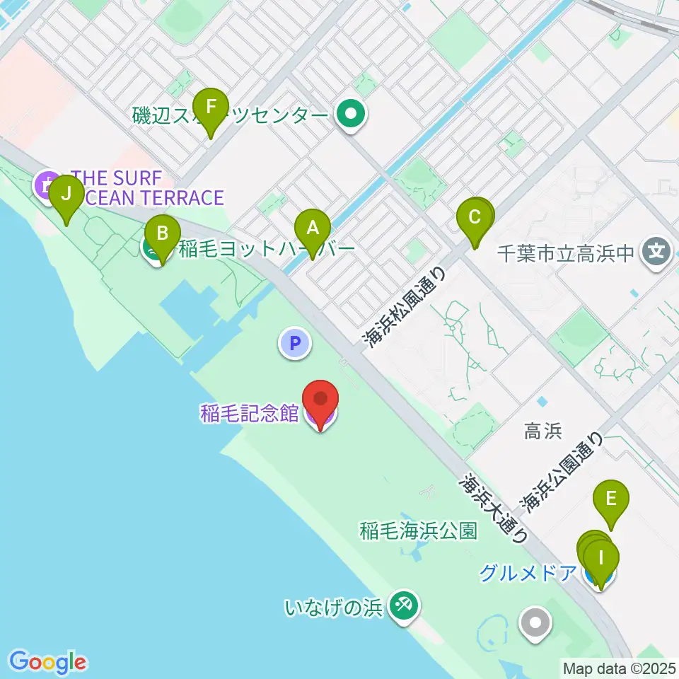 稲毛記念館周辺のファミレス・ファーストフード一覧地図