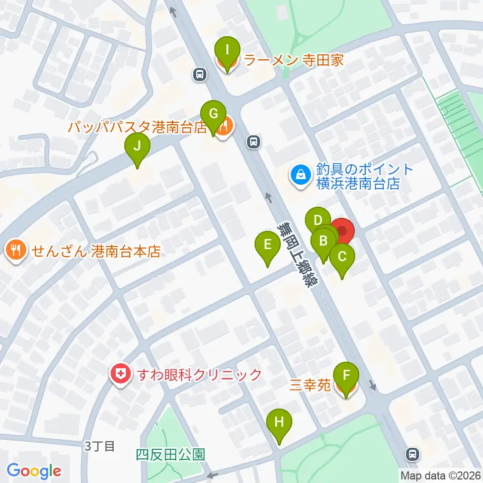 新堀ギター音楽院 港南台教室周辺のファミレス・ファーストフード一覧地図