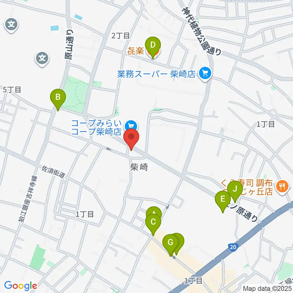 ユリミュージックキャンパス調布柴崎教室周辺のファミレス・ファーストフード一覧地図