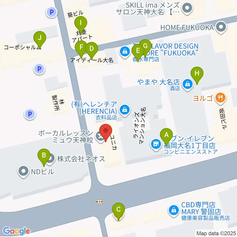 ボーカルレッスンミュウ天神校周辺のファミレス・ファーストフード一覧地図