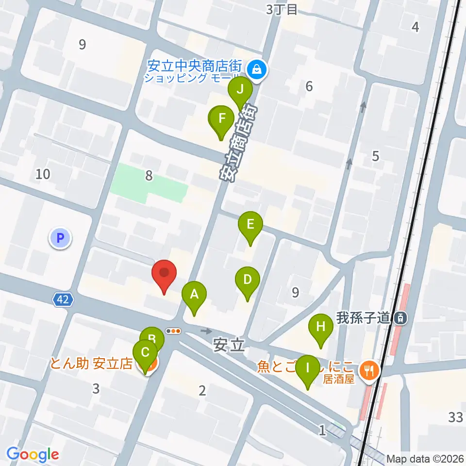 アンリュウリコーダーギャラリー周辺のファミレス・ファーストフード一覧地図