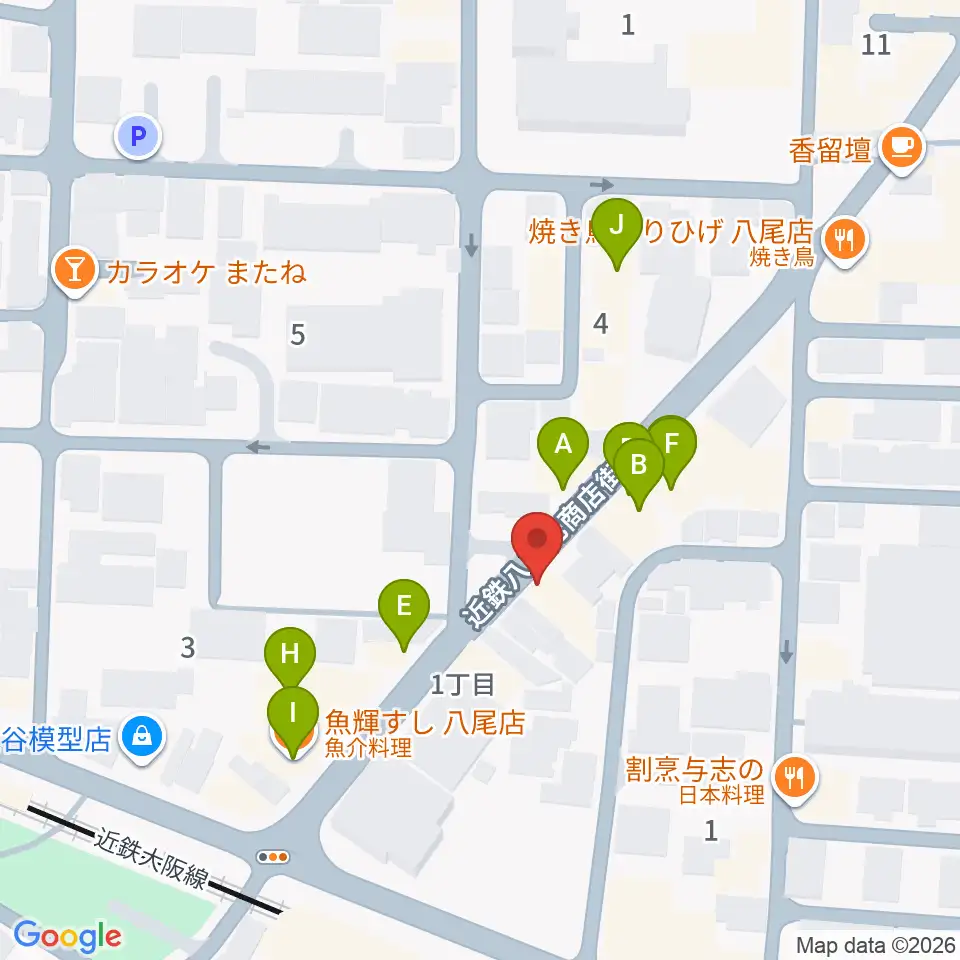三嶋音楽教室周辺のファミレス・ファーストフード一覧地図
