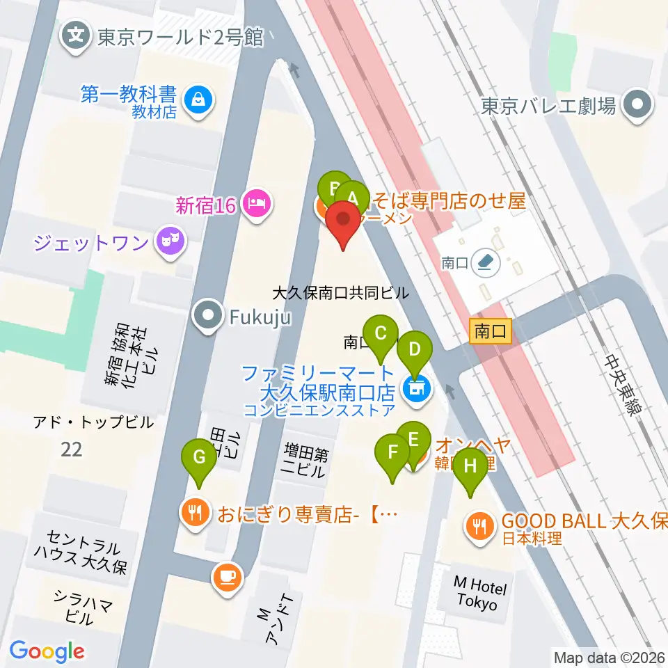 大久保ひかりのうま周辺のファミレス・ファーストフード一覧地図
