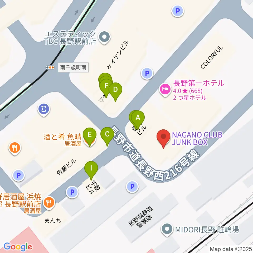 長野クラブジャンクボックス周辺のファミレス・ファーストフード一覧地図