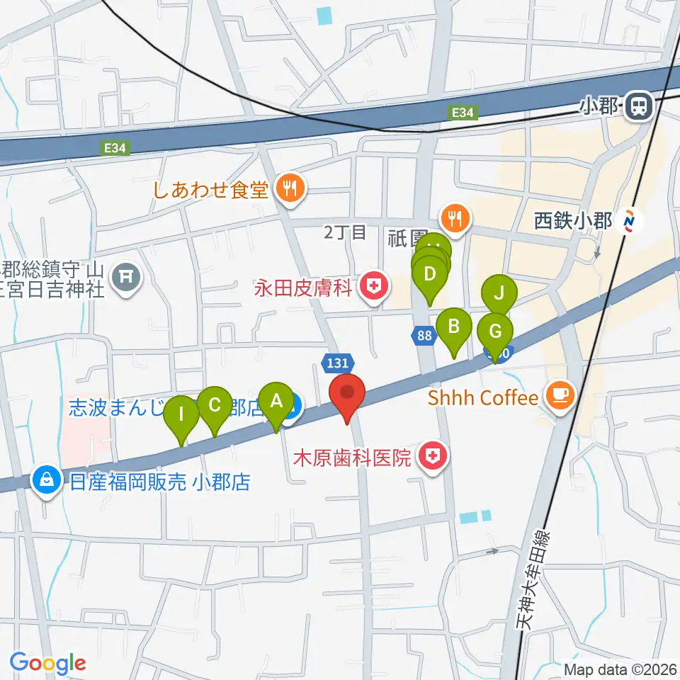 小川楽器 小郡店周辺のファミレス・ファーストフード一覧地図