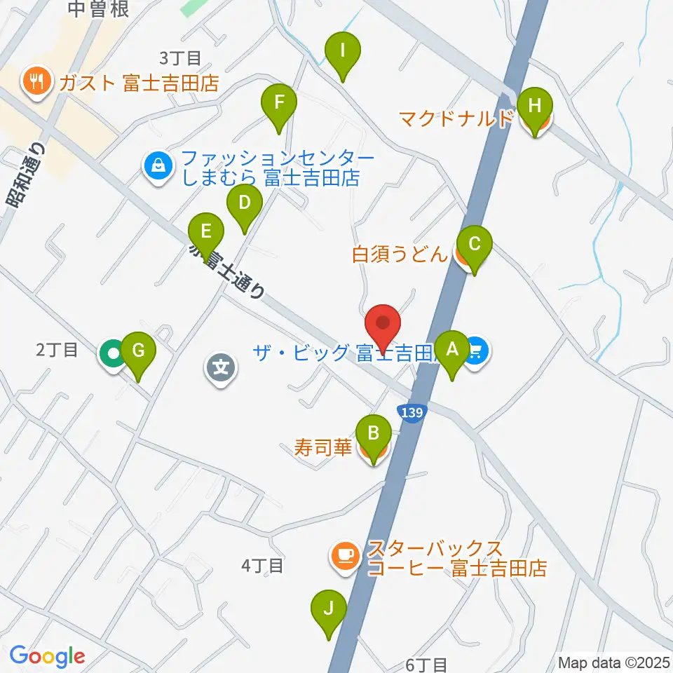 エフエムふじごこ周辺のファミレス・ファーストフード一覧地図