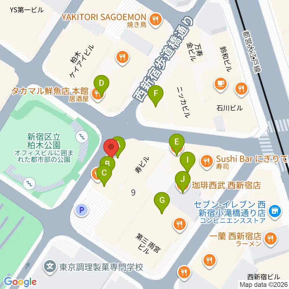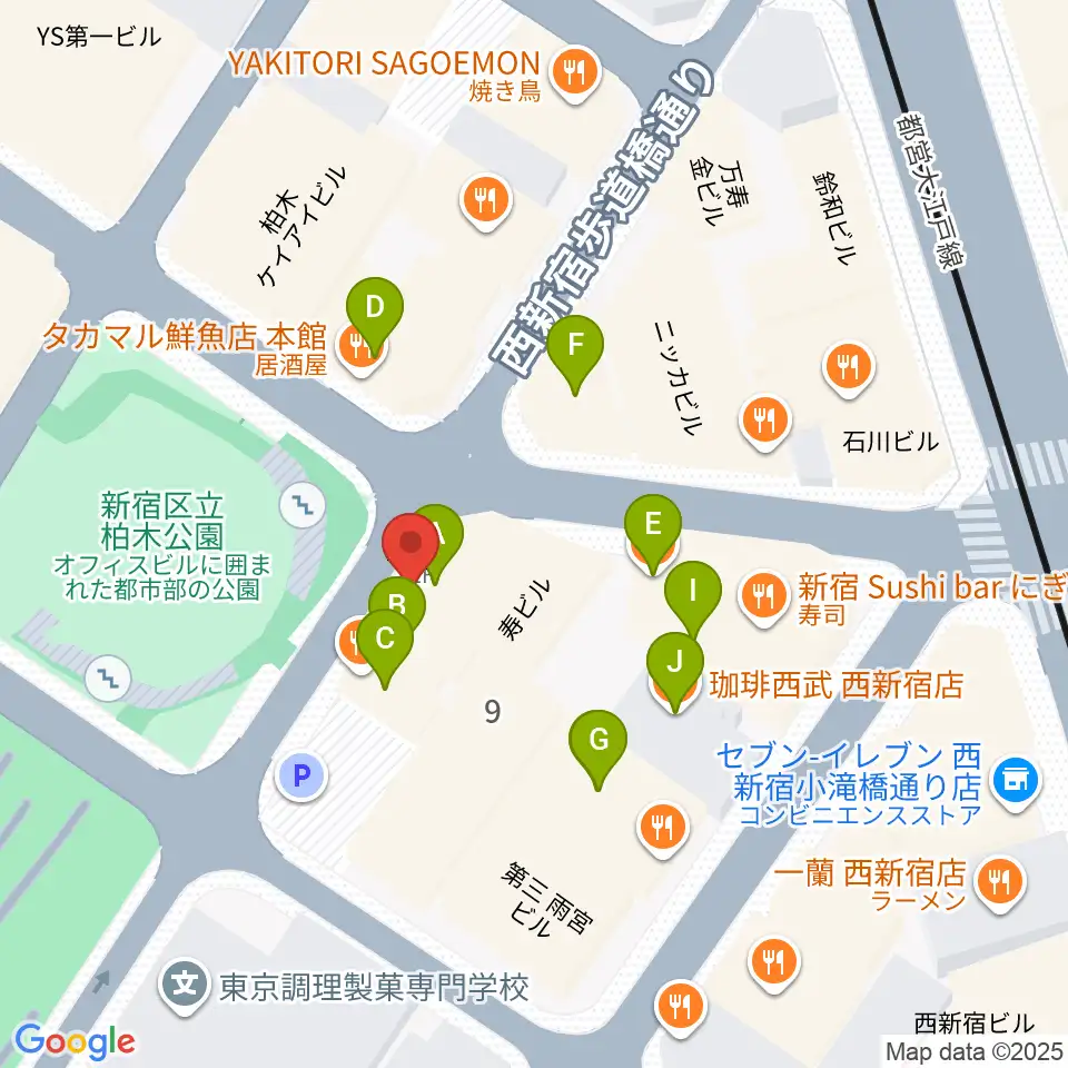 西新宿レゲエショップナット周辺のファミレス・ファーストフード一覧地図