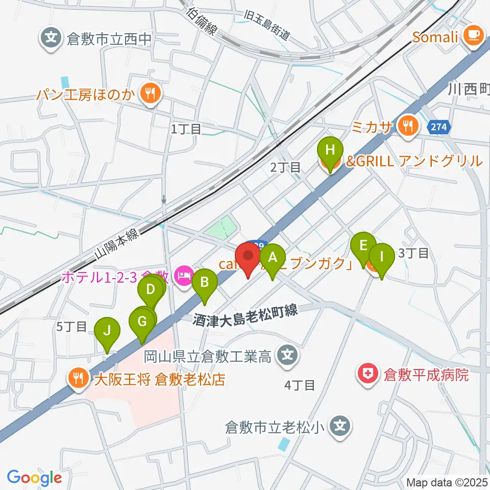 倉敷クッキージャー周辺のファミレス・ファーストフード一覧地図