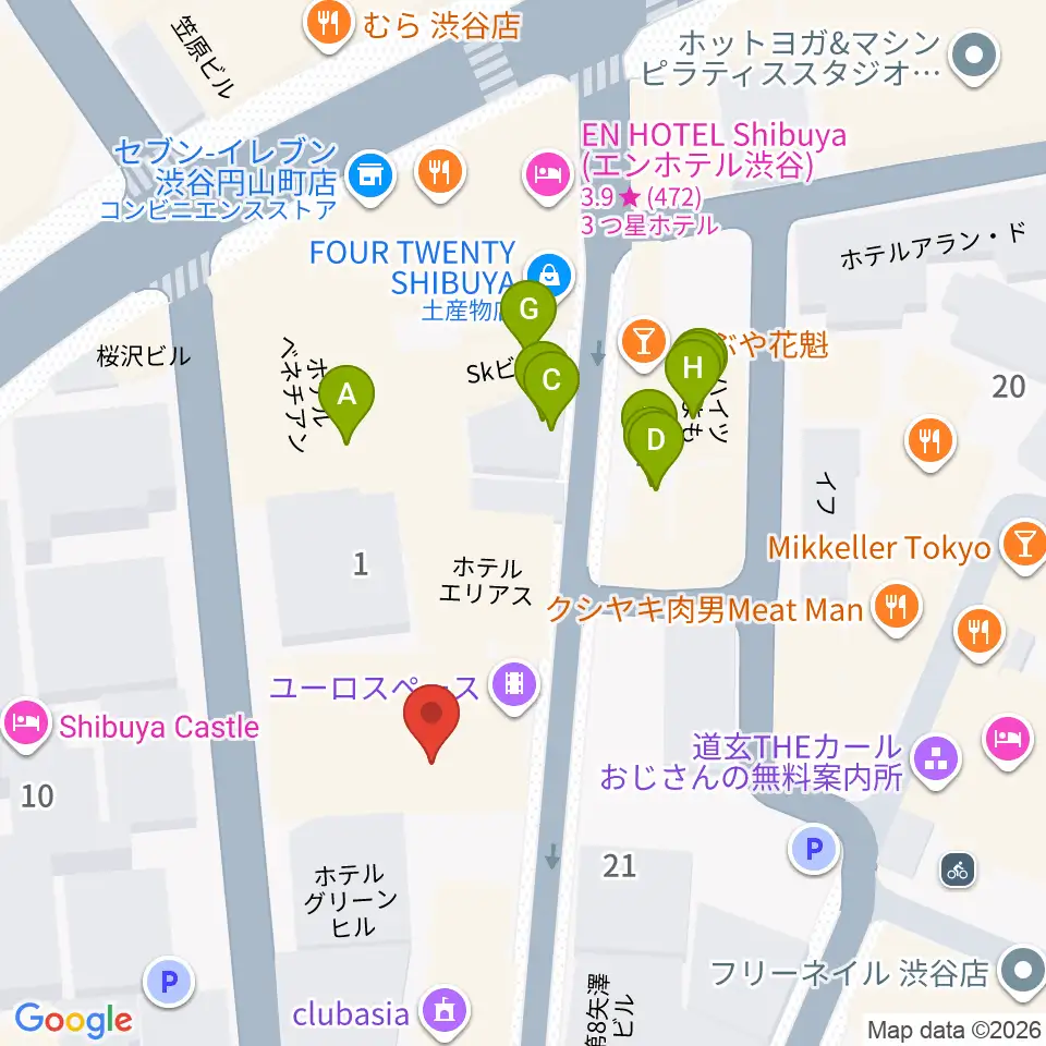 渋谷LOFT9周辺のファミレス・ファーストフード一覧地図