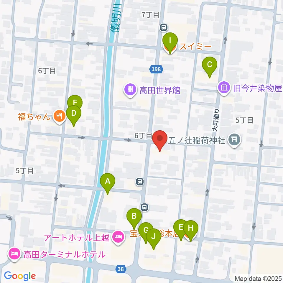 上越ギター教室周辺のファミレス・ファーストフード一覧地図