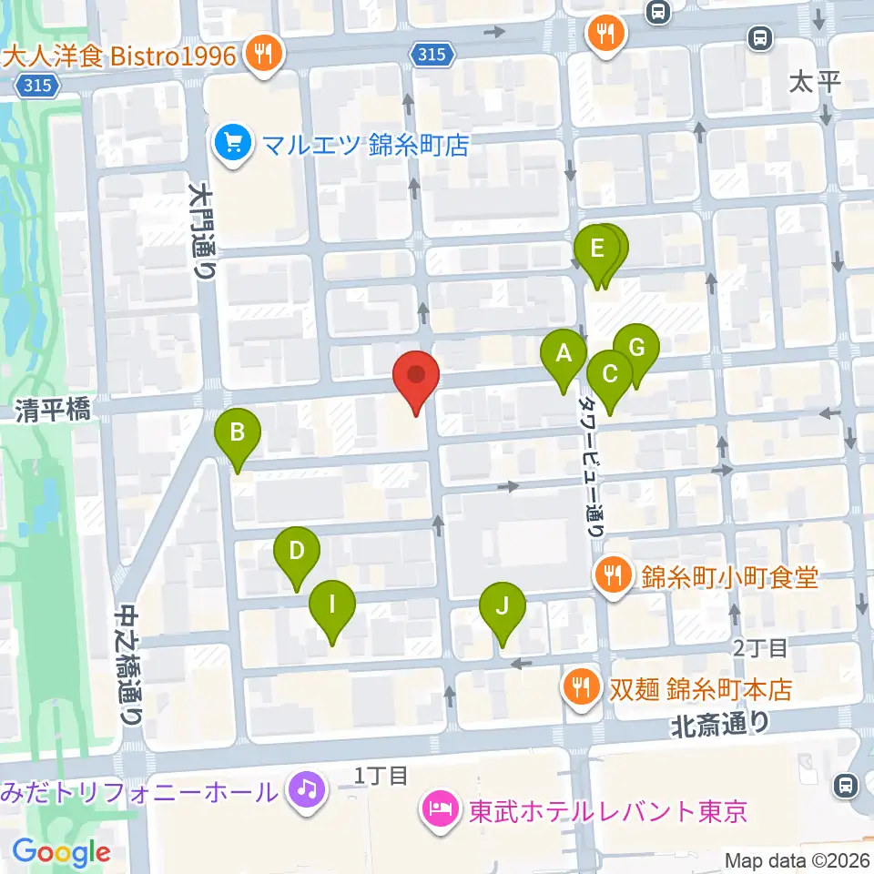 セルフストリングス音楽教室周辺のファミレス・ファーストフード一覧地図