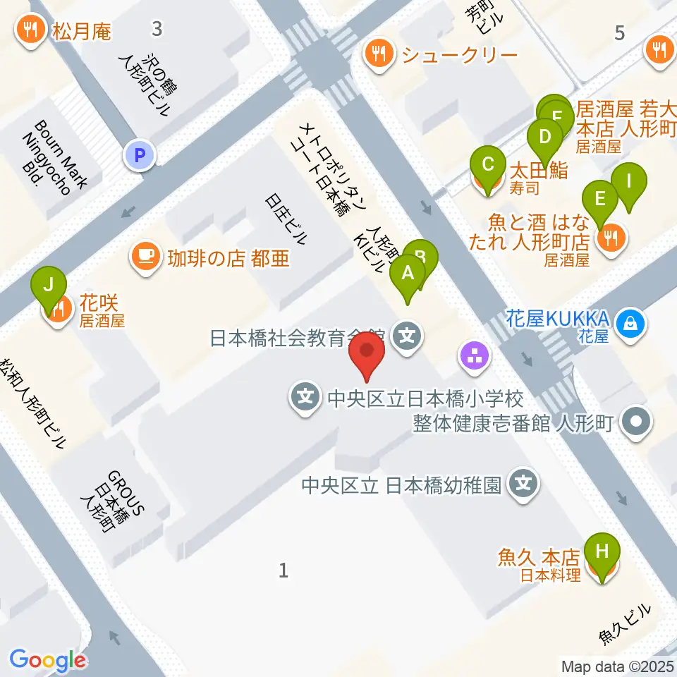 日本橋社会教育会館周辺のファミレス・ファーストフード一覧地図