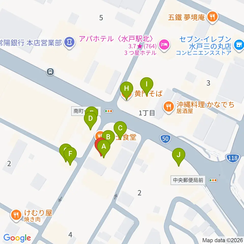 水戸ペーパームーン周辺のファミレス・ファーストフード一覧地図