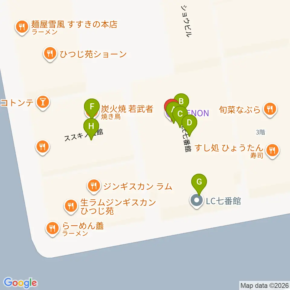 札幌XENON周辺のファミレス・ファーストフード一覧地図