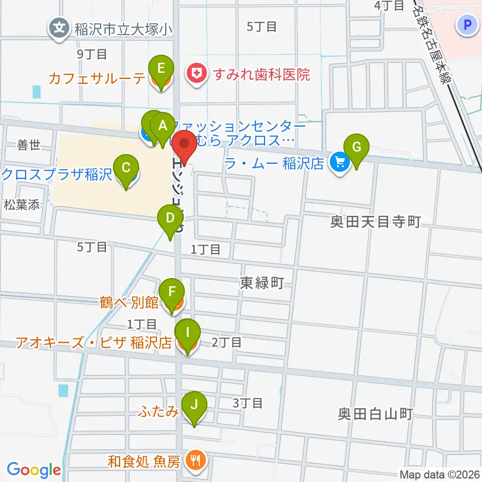 ピアノ教室luce 稲沢教室周辺のファミレス・ファーストフード一覧地図