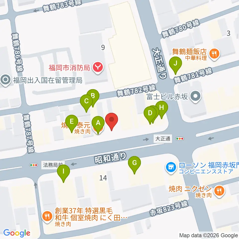 専門学校ESPエンタテインメント福岡周辺のファミレス・ファーストフード一覧地図
