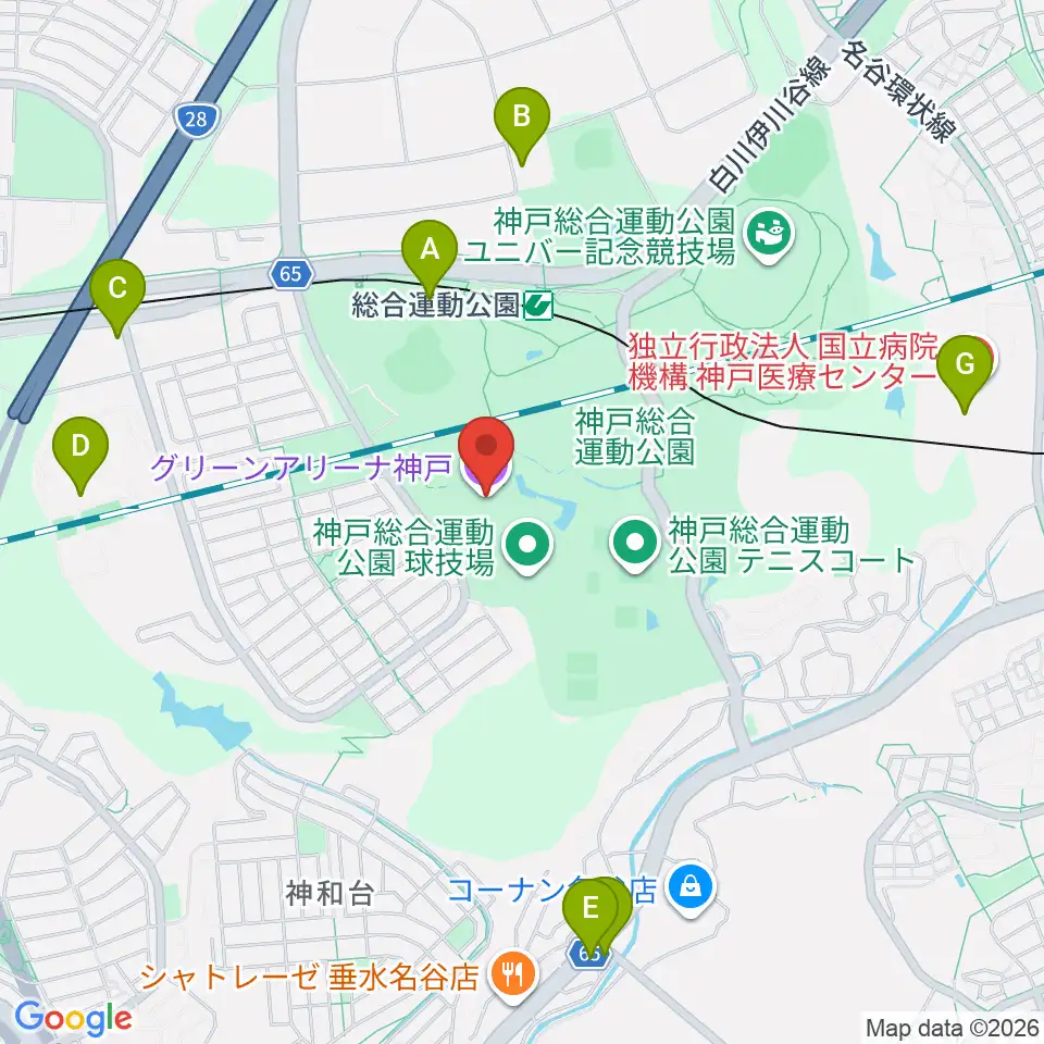 グリーンアリーナ神戸周辺のファミレス・ファーストフード一覧地図
